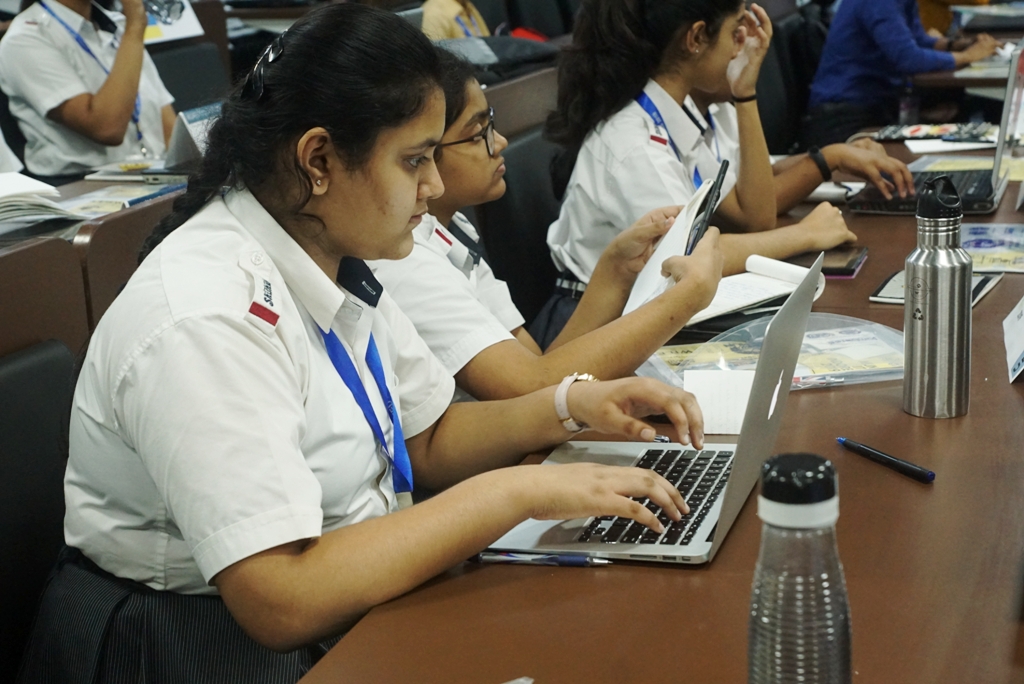 Delegation members were Hridhima Tyagi (Class XI F), Jahanvi Bhoomla (Class X B), Ananyaa Singh (Class X A). Ayush Baweja (Class X G), Ronit Banerjee (Class X B), Kalash Singh Parmar (Class IX C), Ayushmaan Hingorani (Class VIII A), Archit Khandelwal (Class VIII A), Nihar Shah (Class VIII C), Navya Jain ( Class VIII G) and Sakina Pithawala (Class IX G)