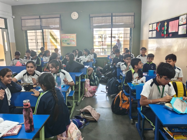 The last day of this session was made even more special as the students of Class V had a tiffin party where they shared food and laughter with their friends. This delightful exchange not only fostered camaraderie but also taught the students valuable lessons in sharing, caring and bonding.