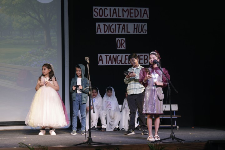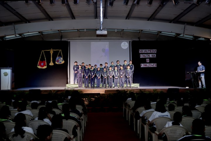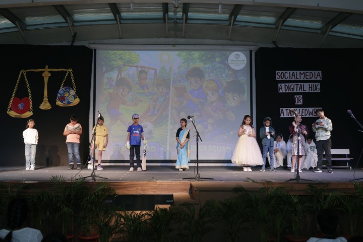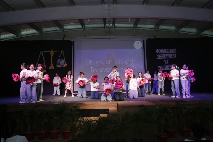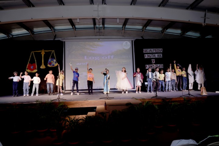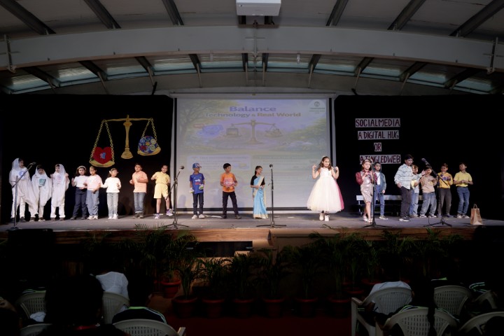 On 14th February 2026, an assembly presentation themed on social media usage and its impact on children, was presented by the students of Classes III D, IV F and V D. The programme aimed to create awareness about responsible digital behaviour while encouraging students to maintain a balanced and healthy lifestyle. The presentation commenced with an engaging skit portraying children’s growing obsession with social media and its effects, while highlighting the importance of being proactive and mindful in daily life. Another creative skit reimagined Akbar and Birbal in an era of social media, thoughtfully addressing cyber safety, prevention of online scams and the importance of nurturing imagination beyond screens.