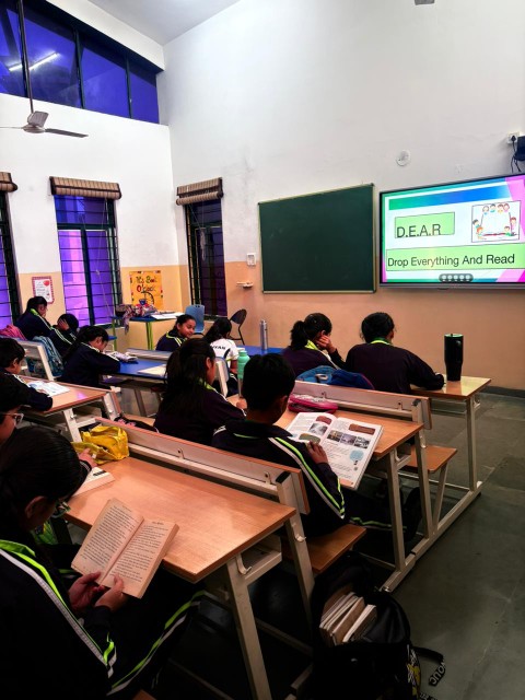 Students participated in D.E.A.R (Drop Everything And Read). They brought an English storybook of their choice and engaged in silent reading along with their teachers. This activity, conducted earlier as well, aimed at reinforcing regular reading habits.