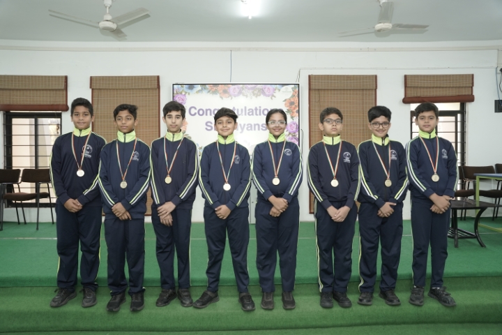 The meritorious students of IEO and IGKO Olympiads from Classes I to V were felicitated to recognise their hard work and to inspire other students to work harder and aim for similar achievements. The objective was to create a positive and competitive learning environment among the Shishyans so that they inculcate the dedication, discipline and perseverance required to achieve success in life.