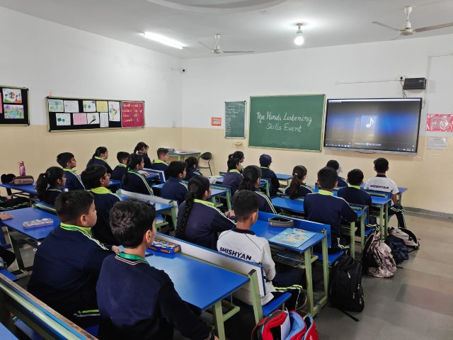 On 15th January 2026, two Hindi language activities were conducted for the Junior Wing students of Classes III, IV and V with the objective of strengthening listening comprehension and handwriting skills.