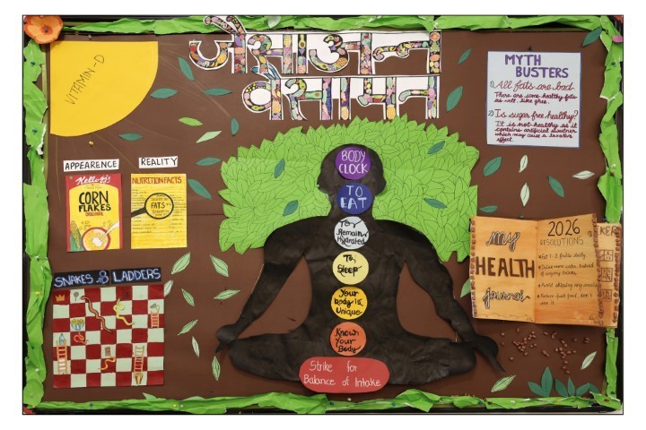 8 Shishyans  from Classes VII and VIII displayed their creativity and understanding of the topic on the Display Board in the OTS. Their creation is a constant reminder to all Shishyans to adopt smart and  healthy eating habits.