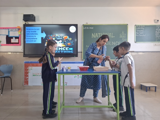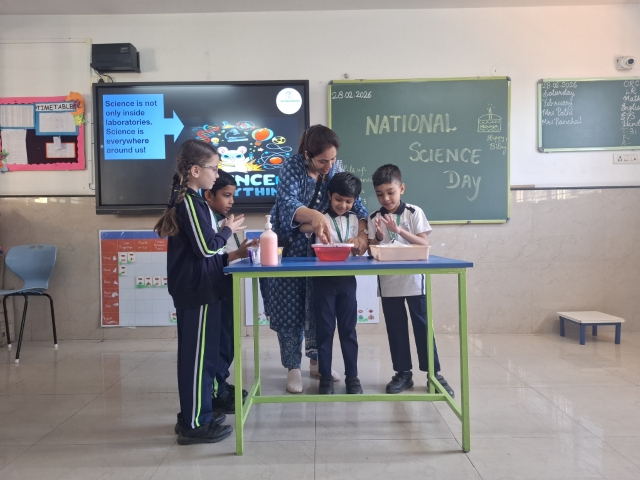 Our youngest Shishyans in Classes I and II turned into mini-scientists today as we celebrated National Science Day! The classrooms were buzzing with curiosity as we honoured the discovery of the Raman Effect and the wonders of the world around us. The day kicked off with an interactive presentation designed to show our students that science isn’t just a subject in a book – it’s everywhere! From why bubbles are round to how plants ‘drink’, the highlight for many was the simplified explanation of why the sea looks blue. The kids were fascinated to learn that light ‘bounces’ and ‘scatters’, a concept that Sir C.V. Raman proved to the world nearly a century ago.