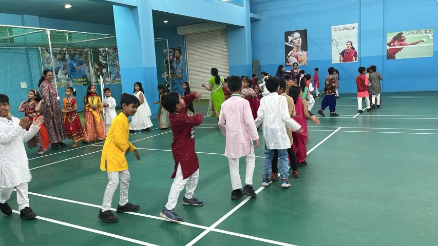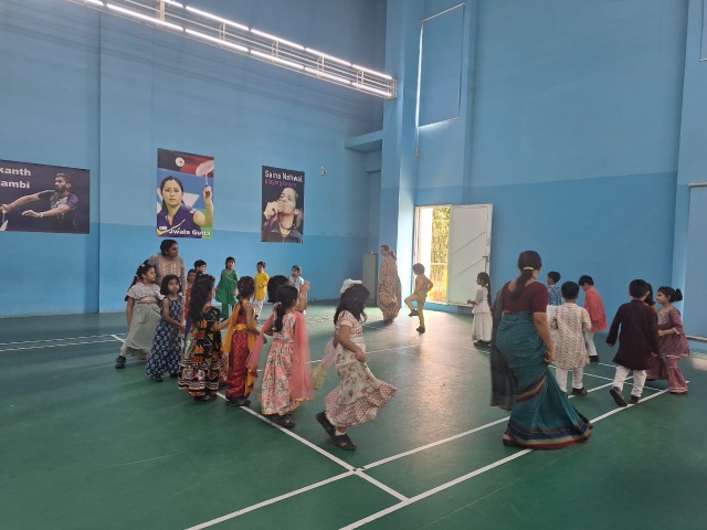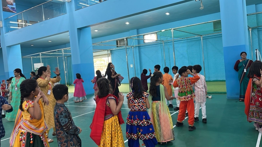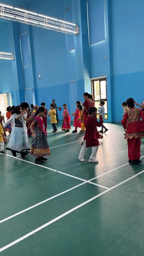 Embracing the spirit of Navratri, the Shishyans of Sr. KG and Classes I to V participated enthusiastically in garba. They wore vibrant, traditional outfits, adding to the festive atmosphere. Under the guidance of their teachers, they performed simple garba steps. The celebration highlighted the cultural importance of Navratri, promoting joy, togetherness, and appreciation for Indian culture.