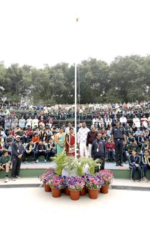 The school celebrated Republic Day with grandeur and patriotic fervour on 26th January 2026. The day began with a 5-km marathon, conducted in two groups—Classes VI to VIII and Classes IX to XII. The marathon , organized for the cause: ‘Save Water Save Life’, encouraged endurance and a spirit of sportsmanship among the students . Medals were awarded to the first 100 boys and girls in each group, recognising their remarkable performance.