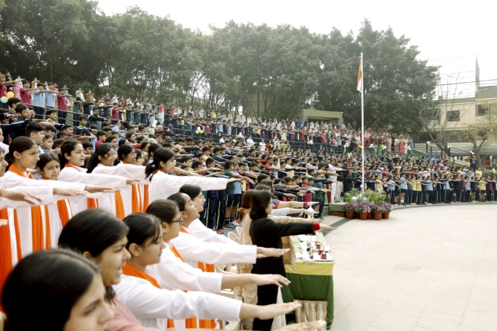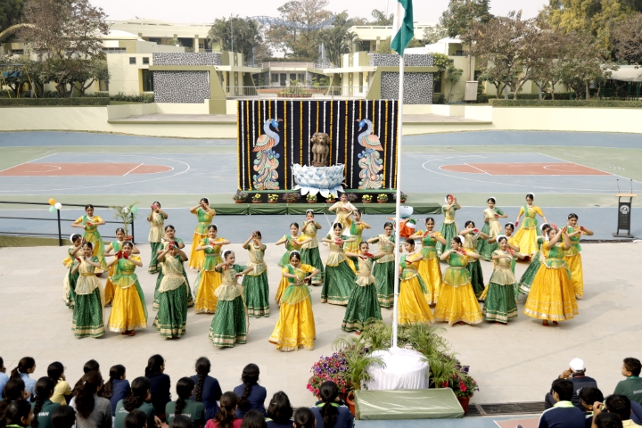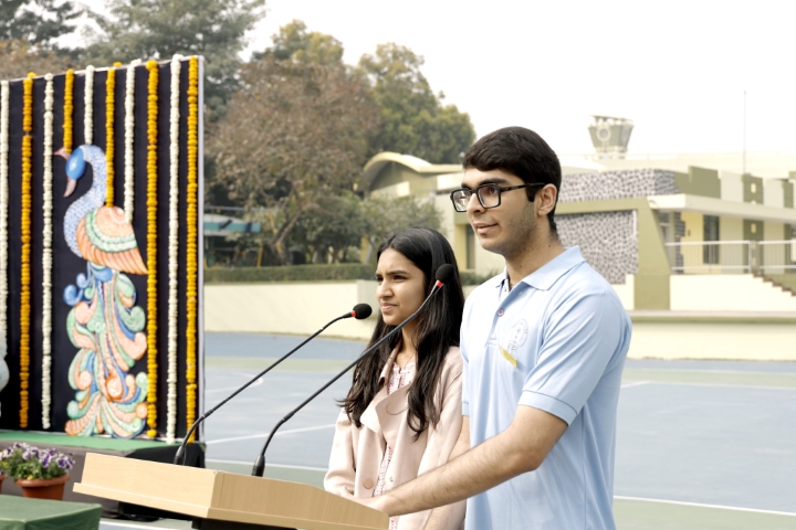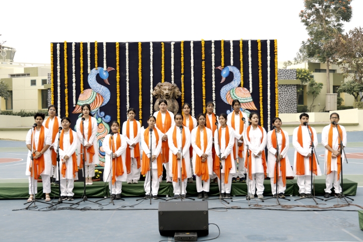 The programme featured an English speech delivered by Ami Asija and a Hindi speech delivered by Arham Khan, Arya Meet Desai, Kabir Khan and Samaira Pachauri , both of which reflected the spirit and values of the nation. The cultural programme also included a melodious Bengali song, an energetic Indian dance performance, and a deeply inspiring Hindi Poem delivered by , which instilled patriotic feelings among the audience. The achievements of the marathon participants were recognised with trophies awarded to the first and second position holders in both groups. In addition, Lata Mangeshkar House was honoured with the Trophy for the House with the Highest Attendance . The programme was beautifully anchored by Jahnvi Jhulka, Namya Dppmgarwal and Falguni Athale and Ami