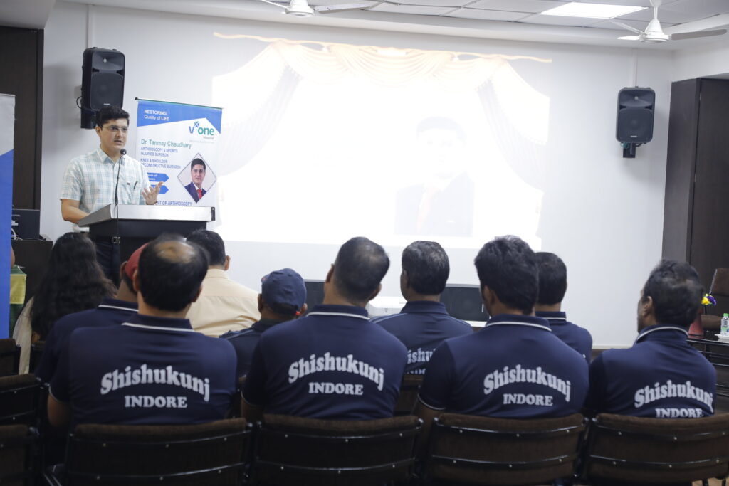 A very informative session on Sports Injury and Prevention was conducted on July 15, 2023 for all the sports educators of the school by Dr. Tanmay Choudhary , a renowned orthopaedic surgeon of the city who has specialized in arthroscopy and sports medicine.