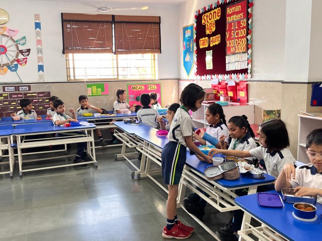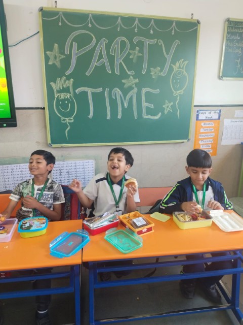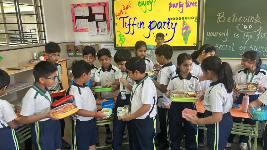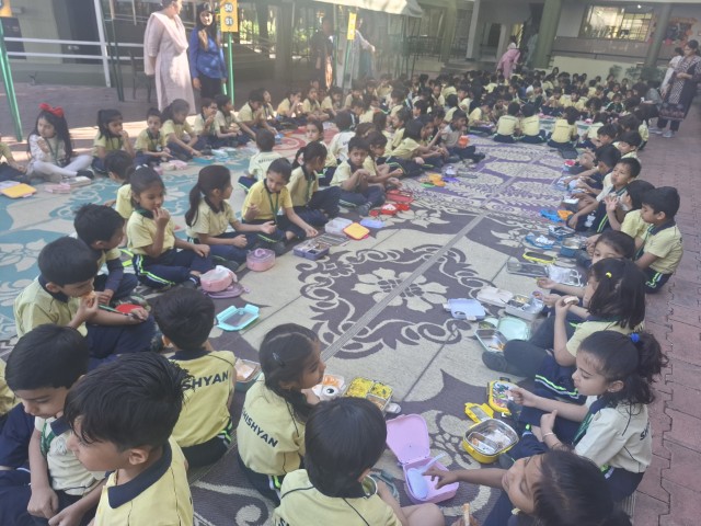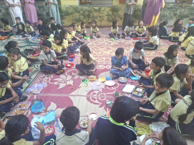 The Shishyans of Sr. KG and Classes I and II enjoyed a tiffin party with their classmates and educators on 11th March 2026. This joyful activity brought students together – sharing their favourite food items, happiness, and friendship on the last day of their academic session. The event was not just about eating together but also about building strong bonds with their friends and classmates.