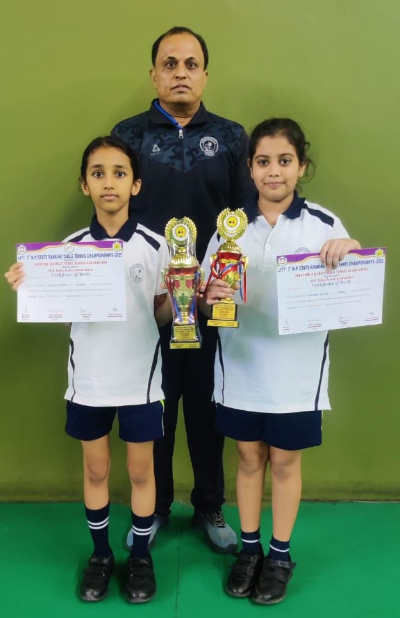 Zahraa Saifee of VD and Dhriti Mehta of VE participated in the Third Madhya Pradesh State Ranking Table Tennis Tournament held at Shivpuri from 19th September to 21st September 2025.