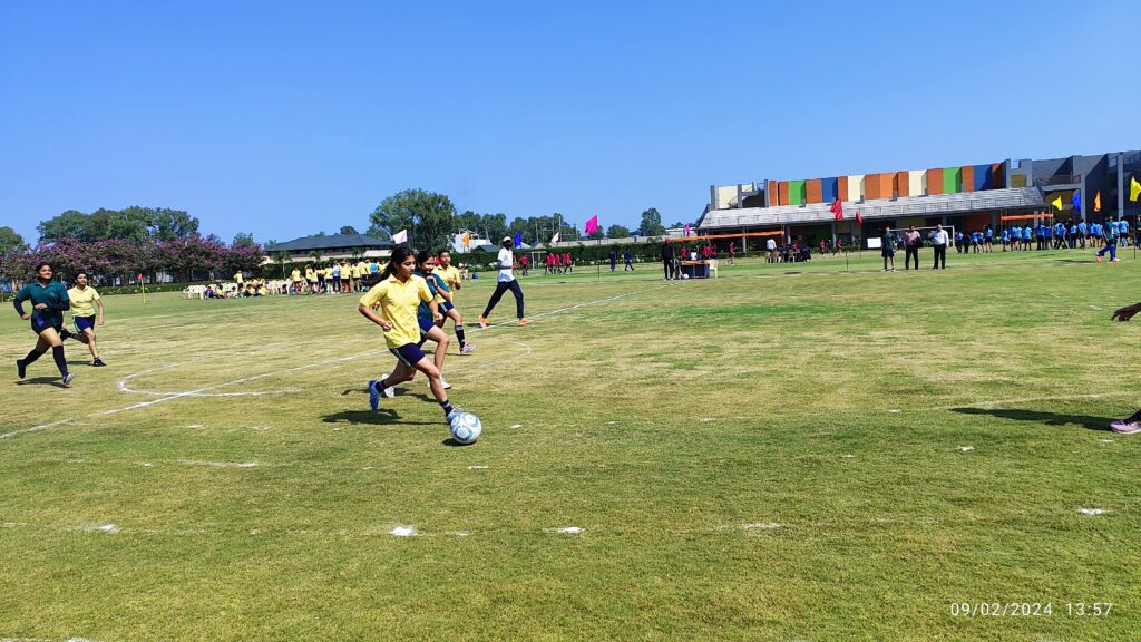 On February 9, 2024, Inter-House Football Competition, a vibrant showcase of student talent, sportsmanship, and teamwork was held. The event saw spirited participation from four houses: Devi Ahilya, Dhyan Chand, Kalam, and Lata Mangeshkar, fostering a strong sense of unity and camaraderie among the students.