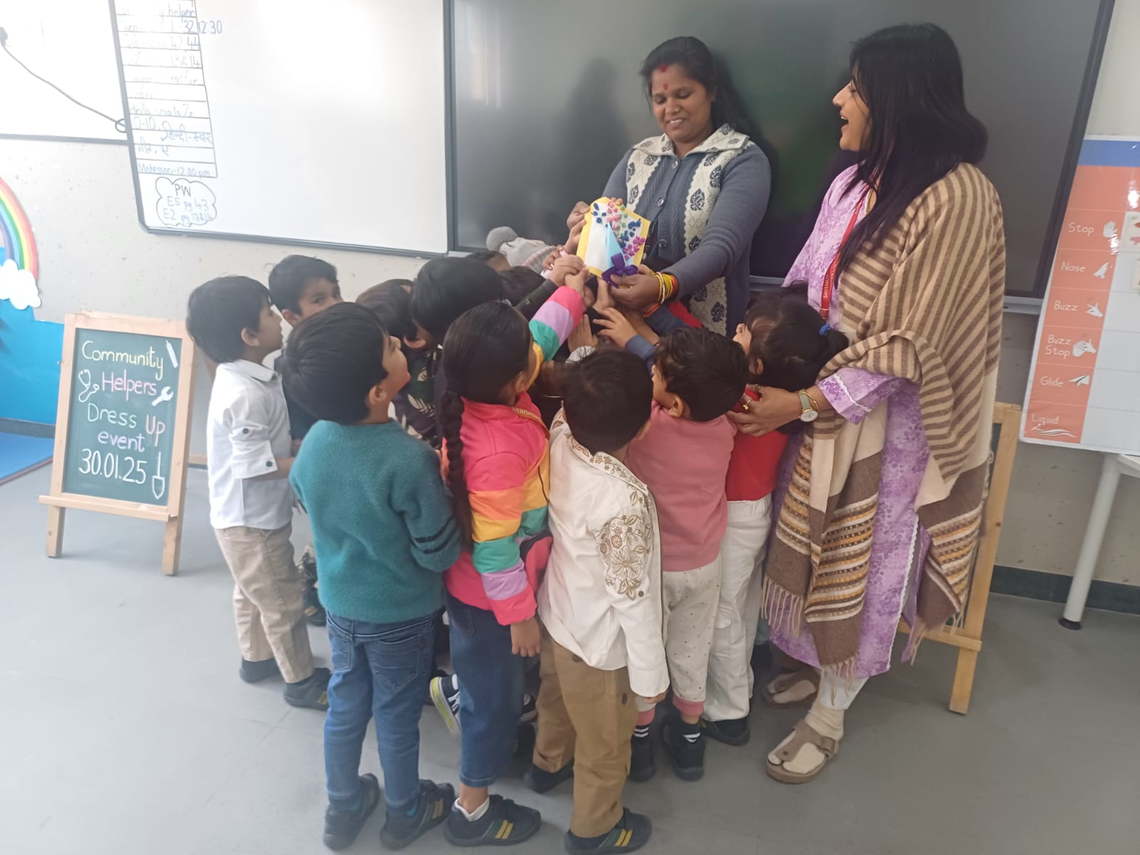 Each child spoke about their chosen helper, sharing their role and importance. They created heartfelt cards for school helpers (didi and bhaiyas), expressing gratitude for their hard work and the love and care showered on our young Shishyans.