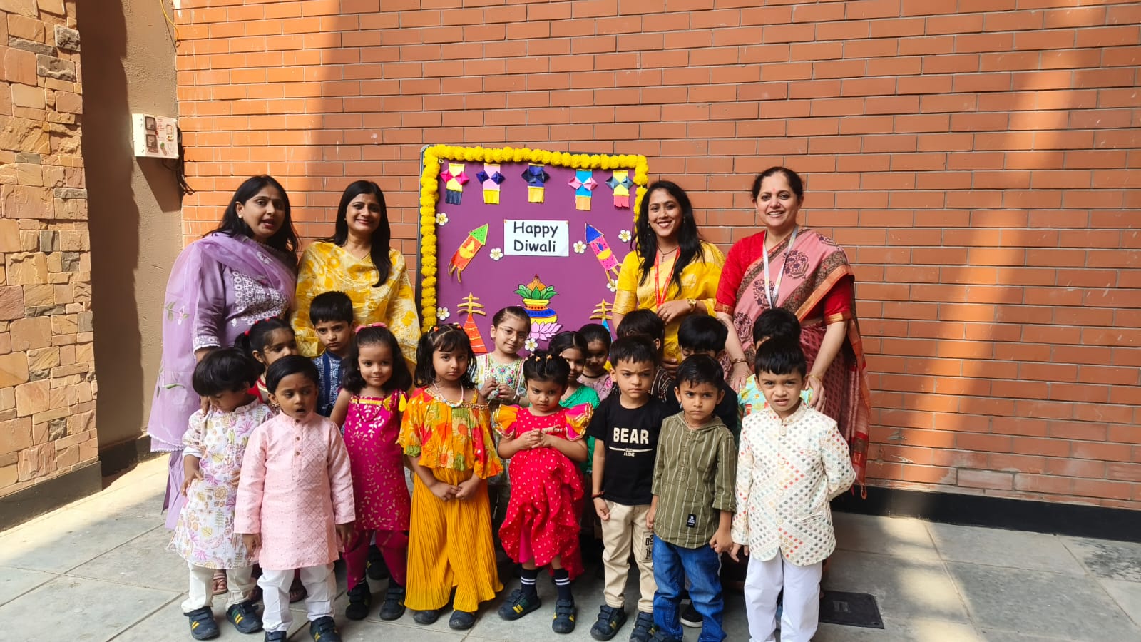 For Class III to V, the celebration carried forward the same festive spirit. Students learned about the deeper significance of Diwali, the importance of cleanliness, harmony, and spreading positivity. They participated enthusiastically in decorating their classrooms with diyas, floral rangolis, and colourful artwork, adding a vibrant festive touch. Through these activities, children imbibed the values of teamwork, creativity, and cultural pride, making the celebration both joyful and meaningful.