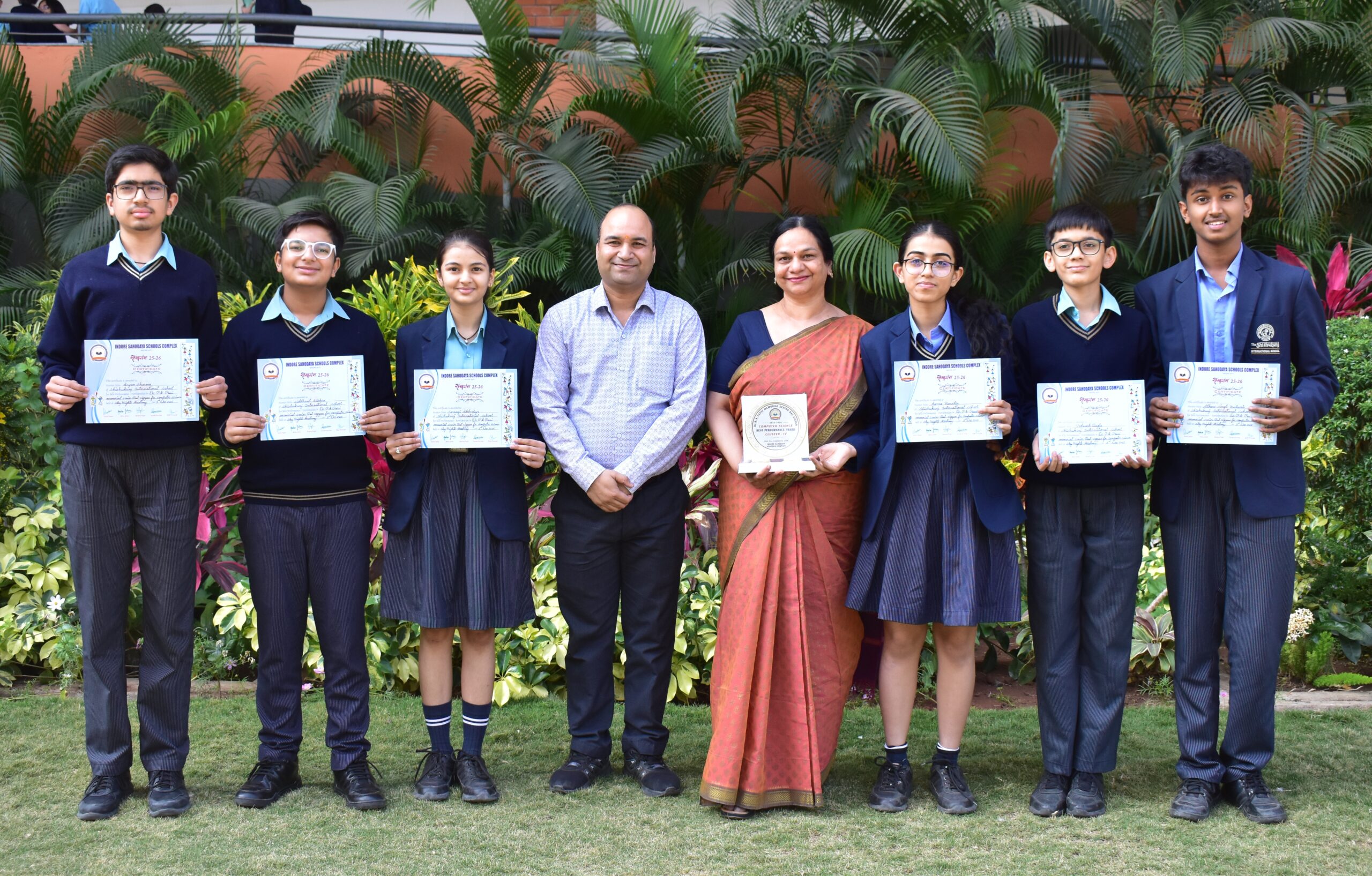 This outstanding accomplishment reflects their intellectual calibre, disciplined preparation, and passion for inquiry. The B.K. Passi Memorial Senior Bal Vigyan Competition, organised by the Indore Sahodaya School Complex, brought together bright young minds from leading CBSE schools, celebrating curiosity, innovation, and analytical thinking. Our students stood out for their conceptual clarity, teamwork, and creative problem‑solving.