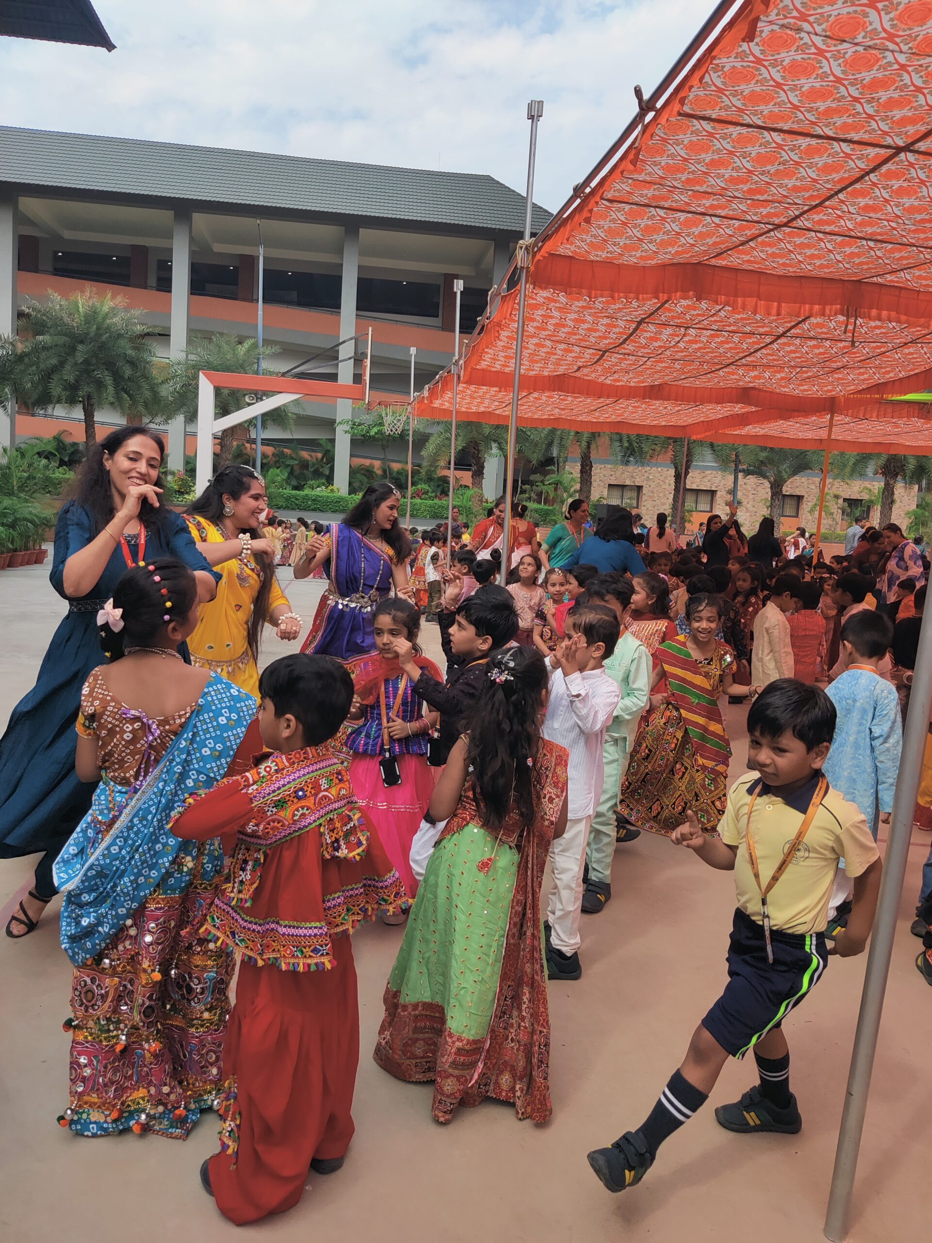 The children were dressed in traditional clothes and learned about Navratri and Dussehra through different activities. After all the festivities the children of all the classes participated and grooved to the beats of garba and enjoyed it to the fullest.