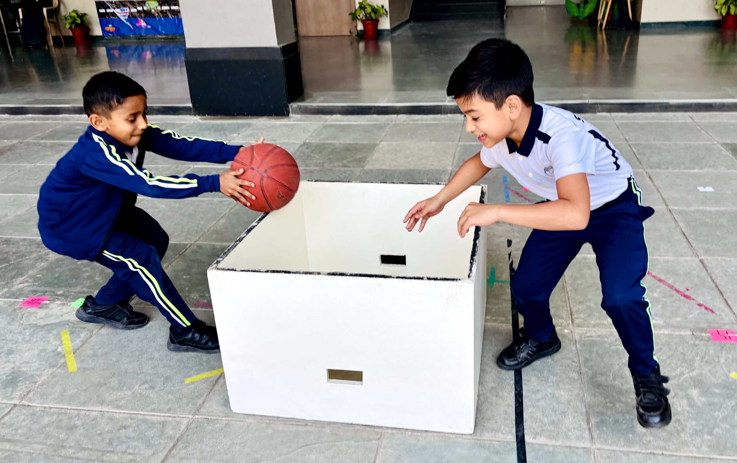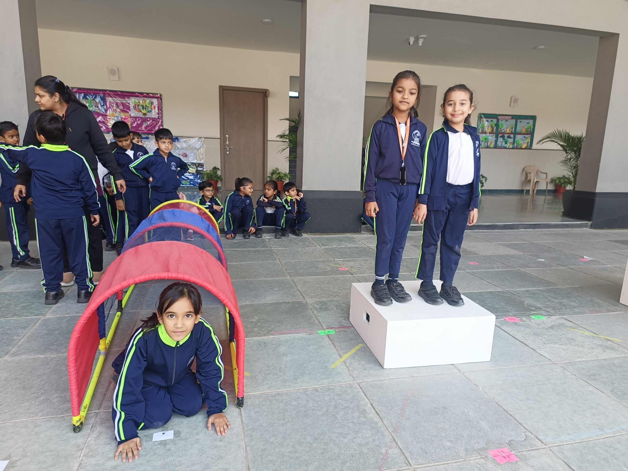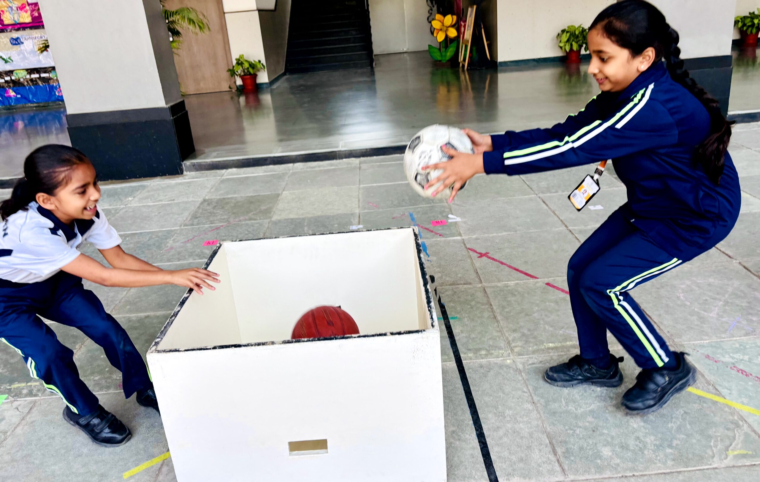 English Day in Classes I and II featured joyful language activities. It kicked off with a Musical Parade: kids circled to music, stopped on jumbled sentence strips, and rearranged them amid laughter and curiosity. Next came Hopscotch Thinking, where hopping on numbers prompted questions on reading, vocabulary, and grammar sparking confident, creative responses. Class I Shishyans also attempted a Prepositions Obstacle course, using words like in, on, and under for fun, physical learning. This combination of sporty activities and language enhancement games added spark and zeal to learning.