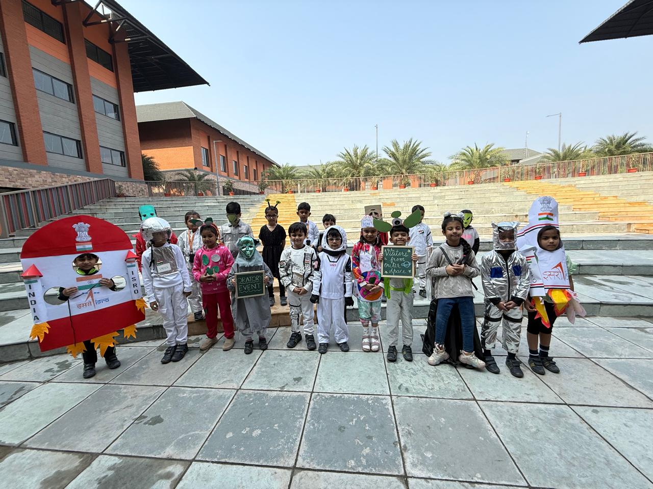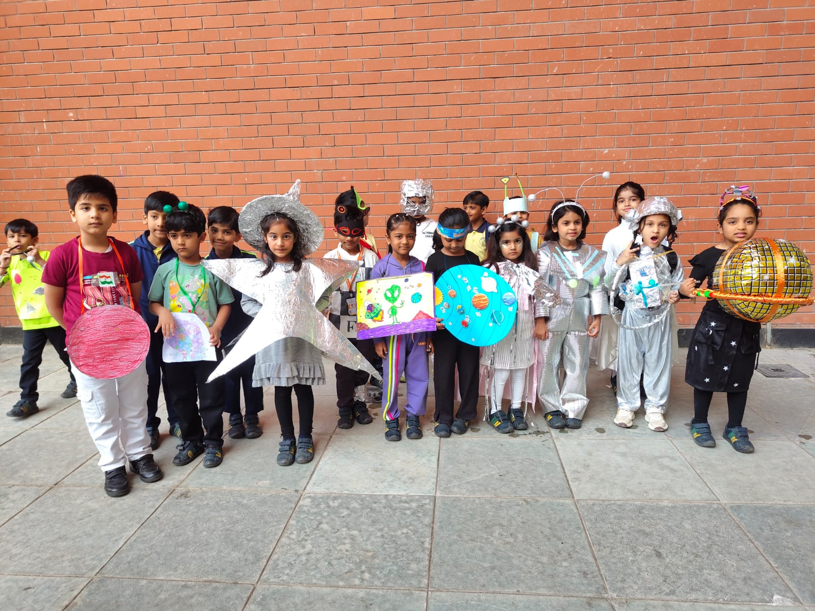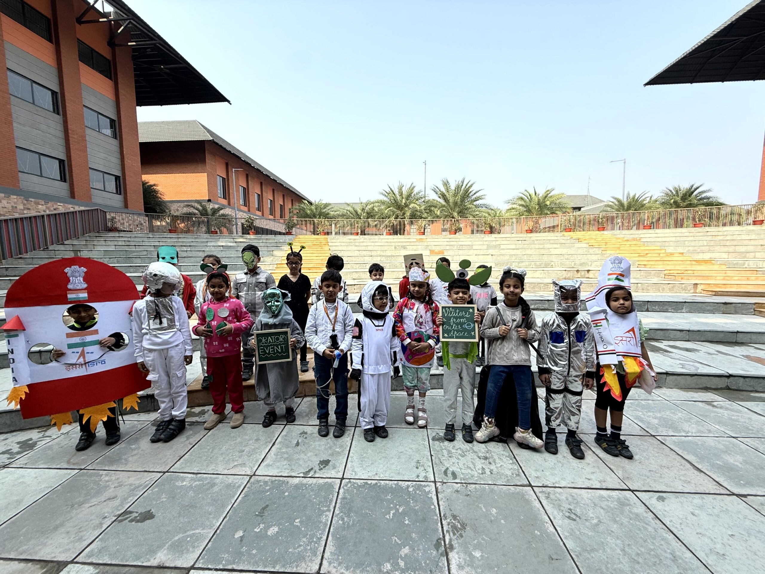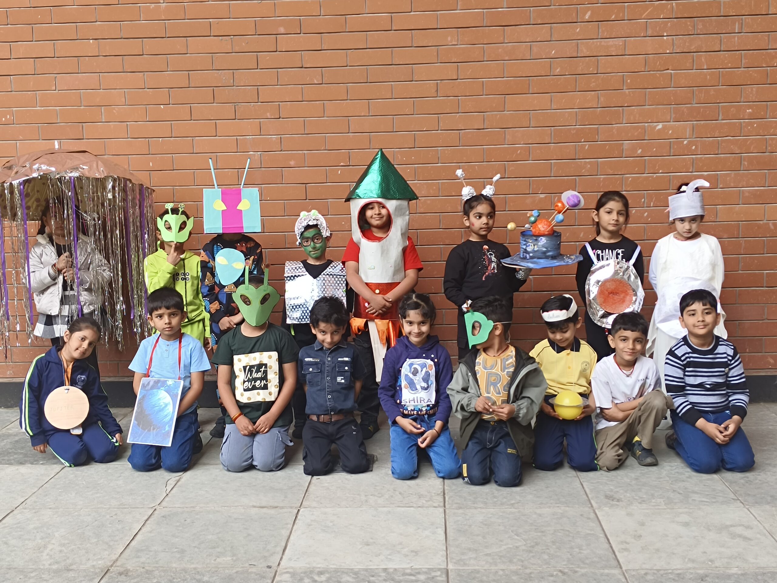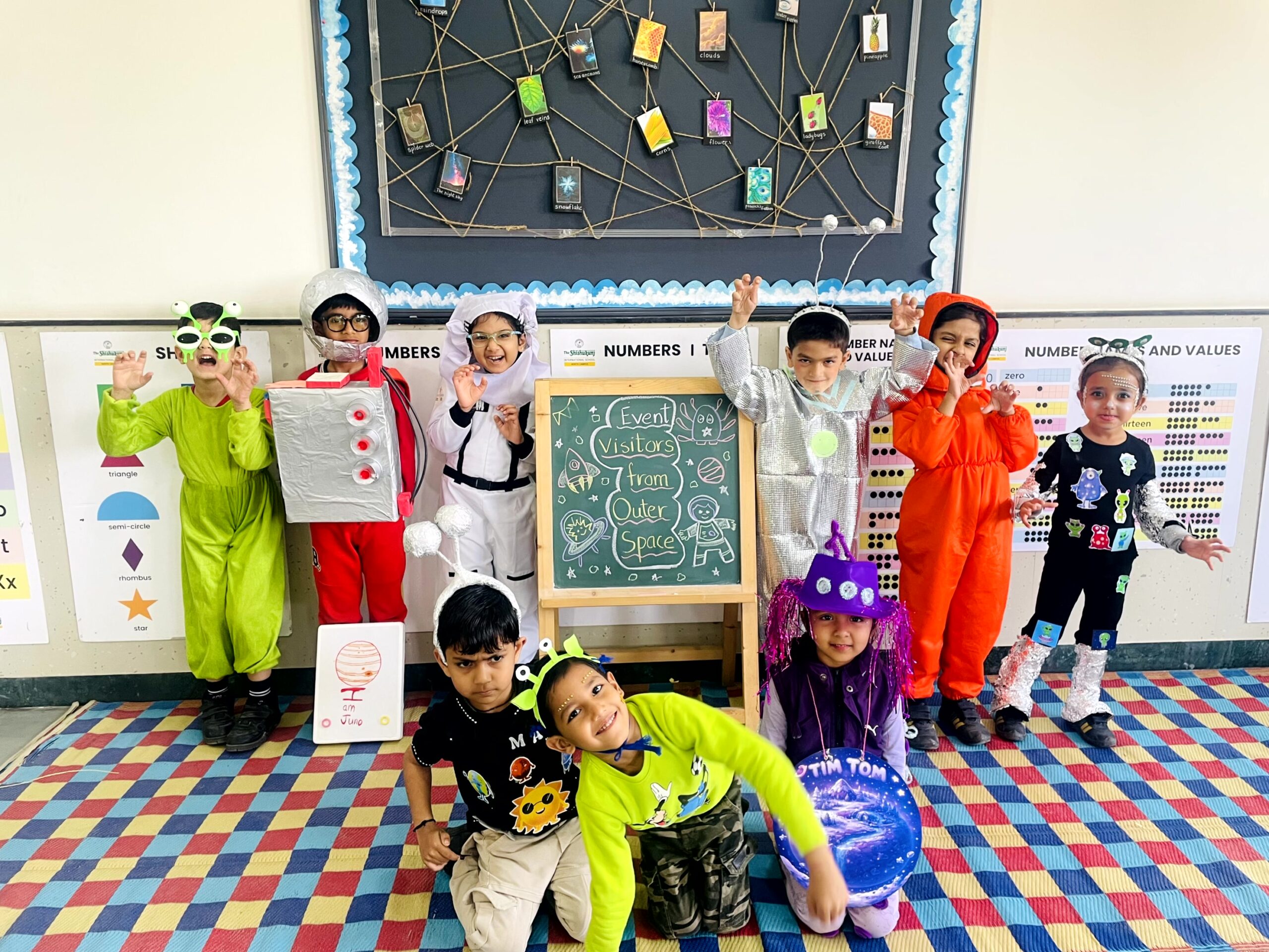 The ‘Visitors from Outer Space’ event was organized for Senior KG students as an extension of the lesson ‘Space and the Future’.
