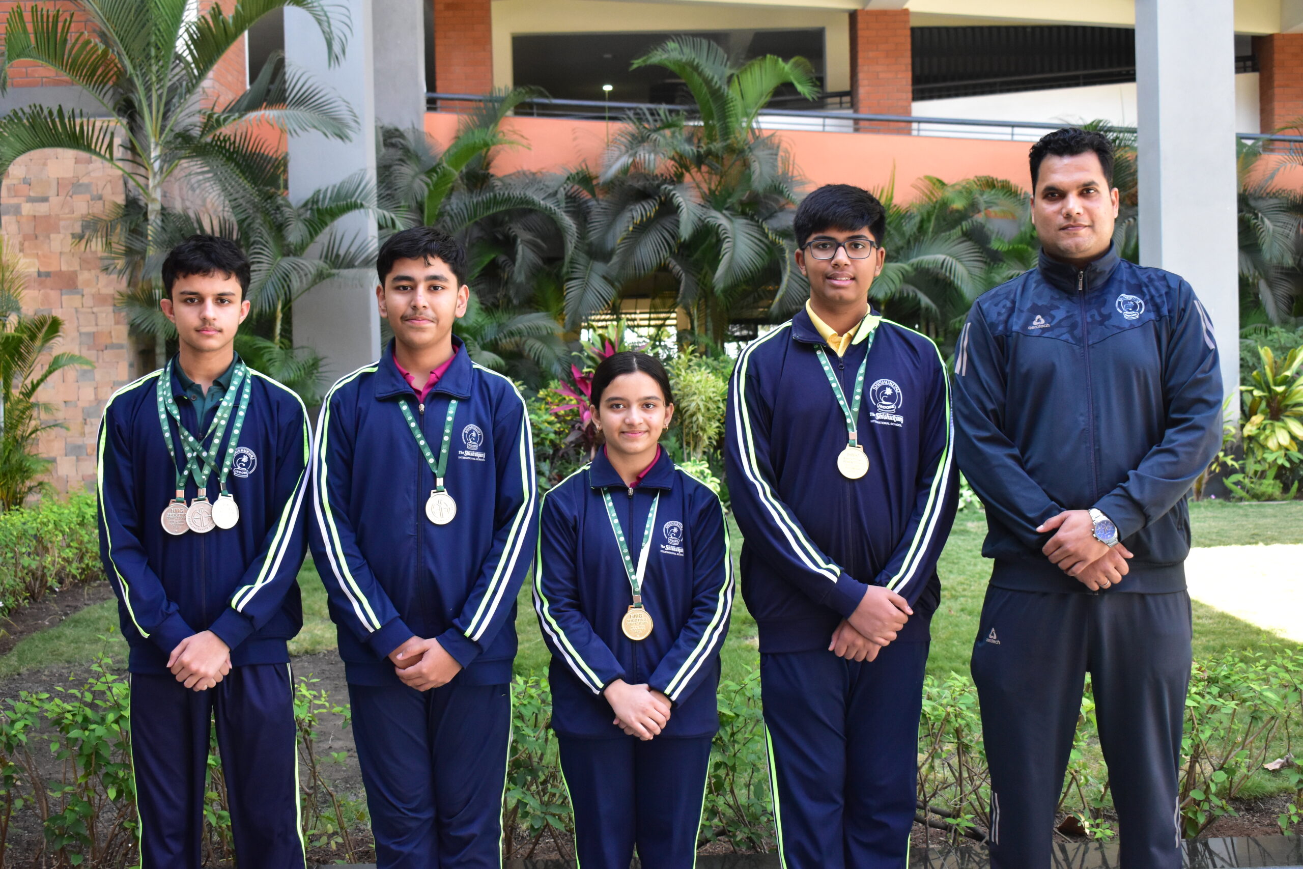 In the Individual Event (Boys/Girls) category, students displayed exceptional focus, precision, and competitive spirit. Ishaan Yadav (Class IX, Section C) and Sakshi Tulapukar (Class IX, Section A) clinched Gold Medals, demonstrating remarkable accuracy and consistency. Aarav Roy (Class IX, Section C) secured a Silver Medal with a commendable performance, while Astitva Tiwari (Class XI, Section A) earned three Silver Medals, reflecting sustained excellence across multiple rounds.