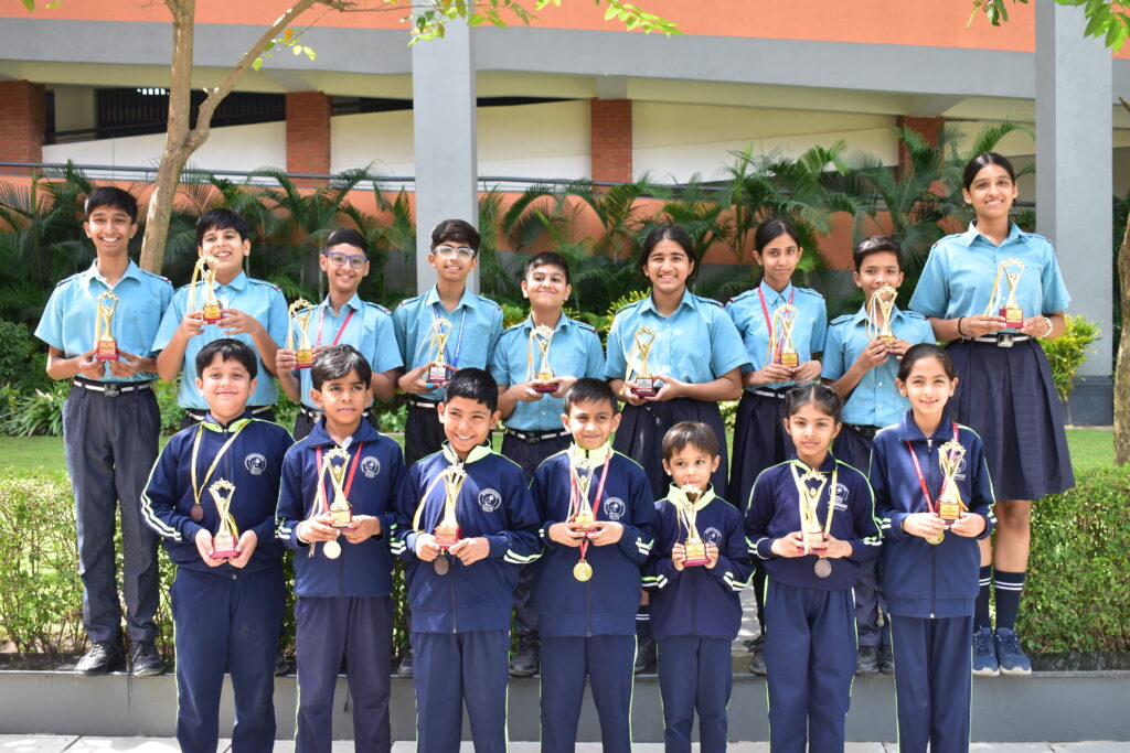 Emerging talents were also recognized for their promising performances — Zain Ali Tayyebi of Class I Robin (Boys U-09), Raksh Kanthed of Class IV B (Boys U-11), Khwaish Vishwani of Class V E (Girls U-11), Kavyansh Verma of Class VII B (Boys U-13), and Aashita Tiwari of Class VII D (Girls U-13).